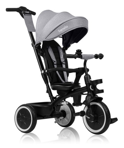 Lionelo Berry Grey Stone to produkt łączący funkcję rowerka spacerowego oraz jeździka trójkołowego. Przeznaczony jest dla dzieci będących w grupie wiekowej od 9 miesięcy do około 5 lat lub aż do osiągnięcia wagi 25 kg. Wygodne siedzisko obrotowe 360 stopni pozwala na swobodną zmianę ustawień, a regulowany uchwyt dla rodzica zmienia swoją wysokość w zależności od wzrostu opiekuna. O bezpieczeństwo dziacka dbają 3-punktowe pasy, osłona na przedniej feldze oraz barierka umieszczona wokół siedziska. Dzięki możliwości regulacji ustawień siedziska oraz specjalnemu podnóżkowi dla młodszych dzieci, produkt dostosowuje się i rośnie wraz z dzieckiem. Całość konstrukcji montowana na klik, co sprawia, że składanie trójkołowca jest nie tylko łatwe, ale również nie wymaga użycia dodatkowych narzędzi.
