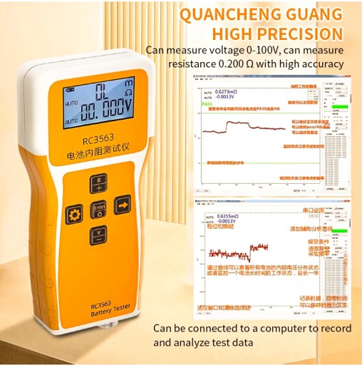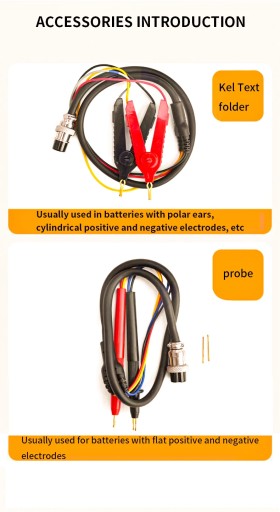 The battery internal resistance tester can measure the internal resistance and voltage of the battery at the same time. It adopts a Kelvin four-wire test clip, which can better avoid the influence of contact resistance and wire resistance, and can perform more accurate measurements.
