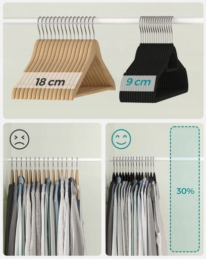 ✅️Wieszaki welurowe są wykonane z wysokiej jakości materiału, który ma antypoślizgową powierzchnię i zapobiega gnieceniu się i zsuwaniu się ubrań.