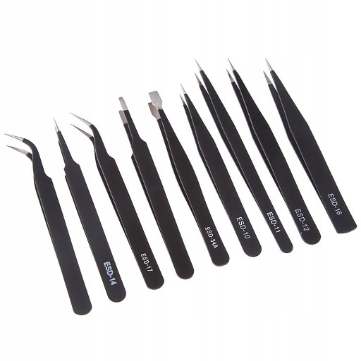 1 zestaw pincety precyzyjnych (9 sztuk)