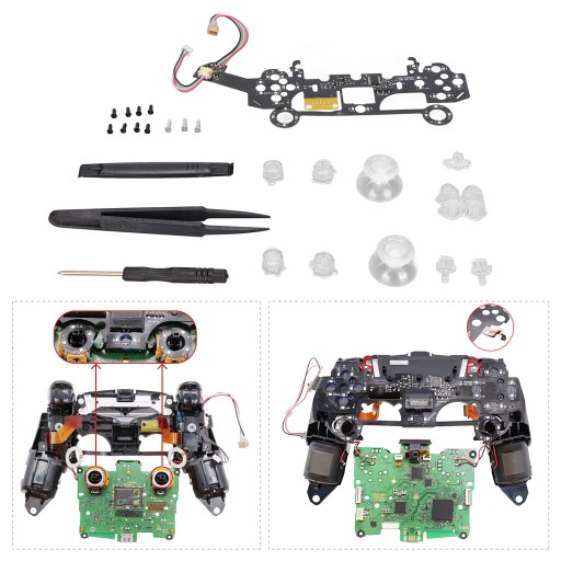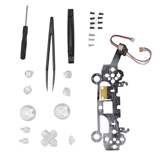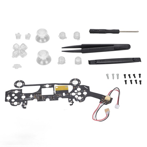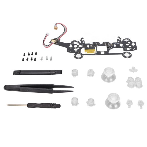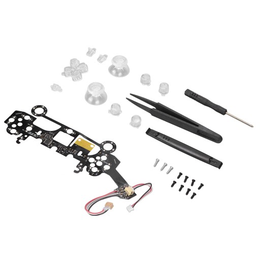 1 x Light Board 1 x Cross Key 2 x Mushroom Hat 4 x Button 1 x SHARE Key 1 x OPTIONS Key 1 x PS Key 11 x Screw 1 x Cross Screwdriver 1 x Plastic Spudger 1 x Plastic Tweezers 1 x Manual
