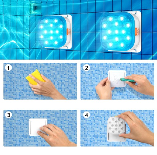 Stabilna i niełatwa do upadku: Dzięki nowej metodzie klejenia - rynnie prowadzącej (odpowiadającej rowkowi głównego korpusu lampy), ta lampa basenowa nadaje się do gładkich lub gładkich lub nierównych powierzchni.