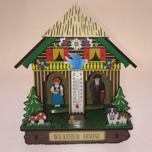 Weather House: To bardzo ciekawy termometr i higrometr, który może wyświetlać temperaturę w °C i °F.