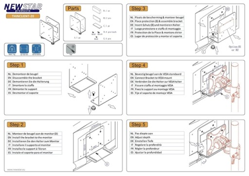 Uchwyt ścienny do ekranów Neomounts THINCLIENT-20 max 7 kg max VESA 100x10