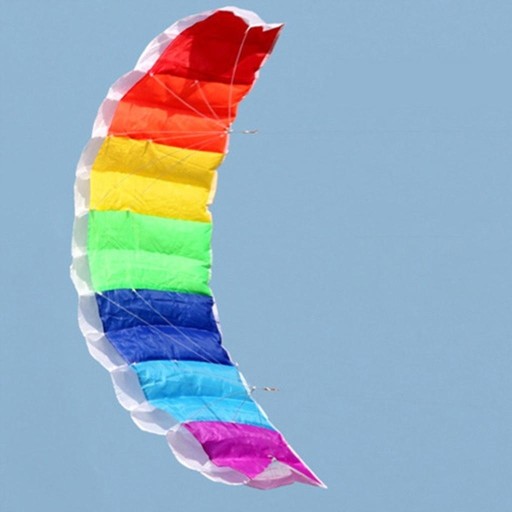 - dostrojony nadmuchiwany latawiec o długości 1,4-2,7 mz 2x 30-metrowymi linkami latającymi, drążkiem sterującym ułatwiającym latanie i przenoszenie