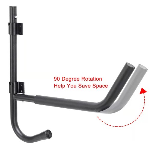 Stojak do przechowywania kajaków można obracać w poziomie o 180 stopni. Gdy nie jest używany, można go złożyć do ściany, oszczędzając miejsce.