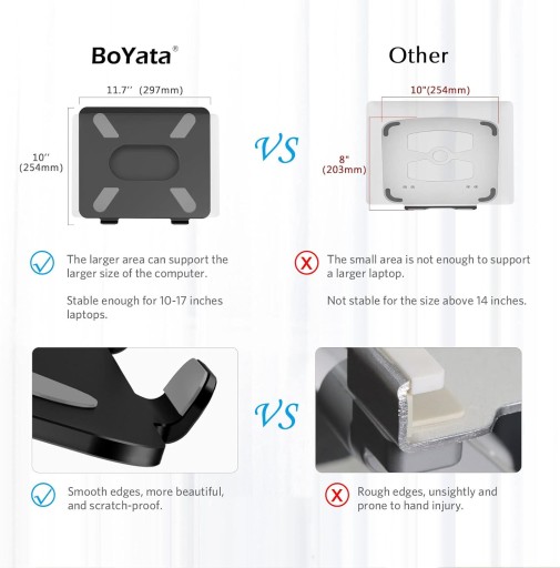 ✅ Solidność i stabilność: Wykonany z wysokiej jakości aluminium, stojak BoYata jest wytrzymały i stabilny, co zapewnia bezpieczeństwo Twojego laptopa.
