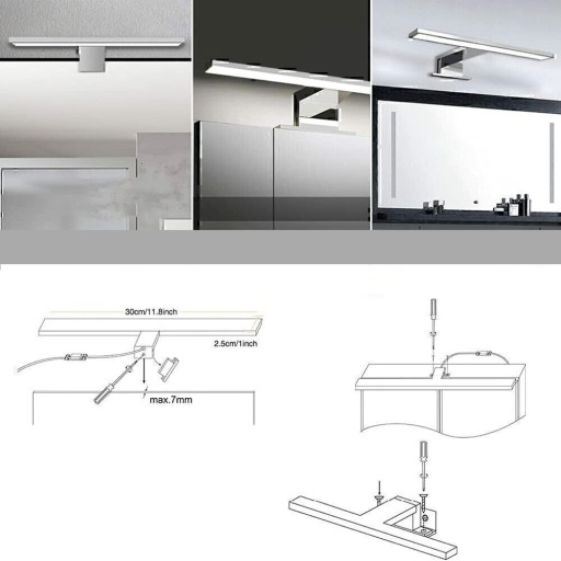 🌟 【Wodoodporność IP44 i odpowiedni rozmiar】 Dzięki klasie wodoodporności IP44 lampa lustrzana może być bezpiecznie używana w wilgotnym środowisku i może być używana jako oświetlenie łazienki. Nadaje się również do sypialni, korytarzy, salonów, kuchni, balkonów itp. Zawiera: 1 x lampa lustrzana LED, zawiera wbudowaną tablicę LED o mocy 5 W. Klips nadaje się do luster o maksymalnej głębokości 7mm.