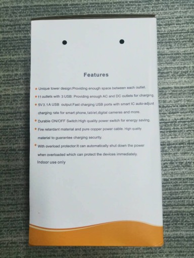 - 11 Gniazdek i 3 Porty Ładowania USB: 11 gniazdek znajduje się na czterech bokach wielokrotnego gniazda usb. Listwa zasilająca USB ma wystarczająco dużo miejsca na każde gniazdo, co jest odpowiednie dla większych wtyczek. 3 porty USB z wbudowanym inteligentnym ICs obsługuje całkowity prąd 3,1 A. Może automatycznie wykryć urządzenia i dostarczyć najszybszy prąd do 2,4 A.