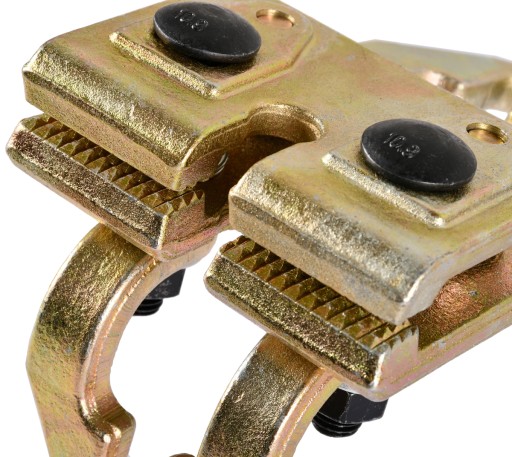 W klamra posiada śruby ze stali niskowęglowej o klasie wytrzymałości 10,9 czyli najwyższej możliwej do zastosowania w tym modelu klamry.