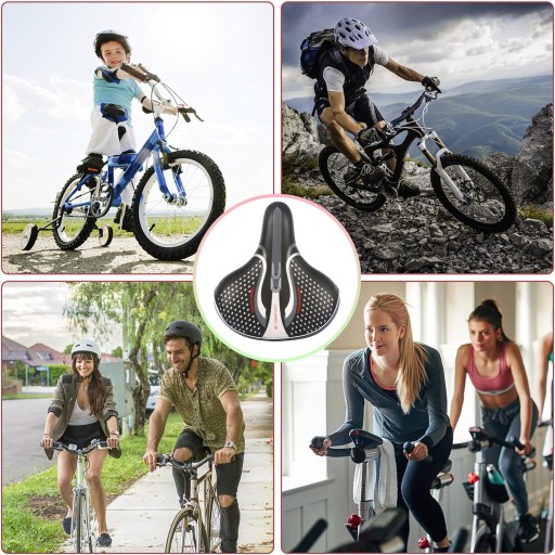☁【Ergonomiczna Konstrukcja】Przednia część siodełka jest wąższa, co zmniejsza tarcie między wewnętrzną częścią uda a siodełkiem roweru podczas jazdy; miękkie siodełko i znajdujący się pod nim sferyczny amortyzator sprawiają, że jazda jest bardziej stabilna i zmniejsza ból spowodowany wibracjami.