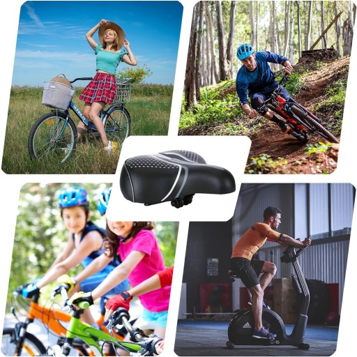 Bardzo szeroki rozmiar, duża powierzchnia do siedzenia, pianka z pamięcią kształtu, powolne odbicie, wygodny, nie męczy się po długim siedzeniu, nadaje się do jazdy rekreacyjnej na długich dystansach.