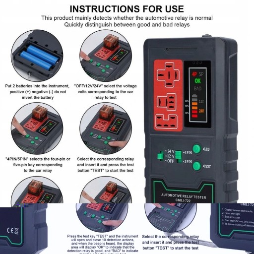 1, [uniwersalne zastosowanie] tester przekaźników samochodowych nadaje się do napięcia 12/24 v i wykrywalnego przekaźnika samochodowego 4pin/5pin, aby twoje życie było wygodniejsze.