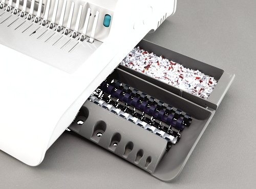 * ergonomiczna - specjalna, osobna szuflada do przechowywania grzbietów z opatentowanym systemem mierzenia grubości dokumentów i doboru odpowiedniego grzbietu