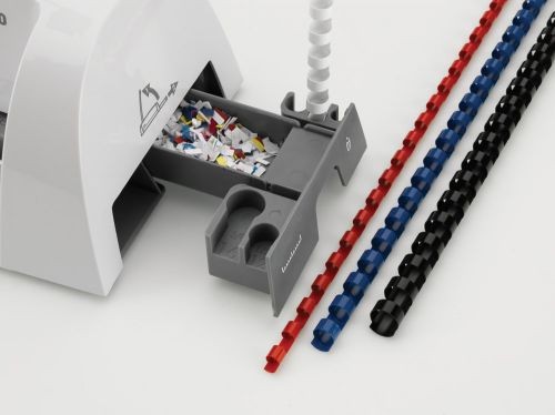 * specjalna szuflada na ścinki z opatentowanym systemem mierzenia grubości dokumentów i doboru odpowiedniego grzbietu