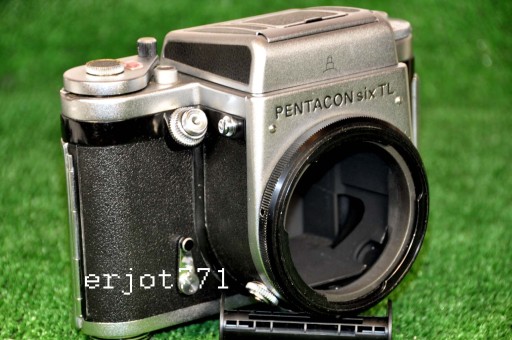 Mam do sprzedania BODY aparatu pentacon six tl o dwu formatach 6x6 cm, -12 klatek z filmu i po włożeniu do aparat specjalnej wkładki można wykonać 16 zdjęć o formacie 4,5 x 6 cm. Aparat po serwisie z ładną okleiną. Aparat posiada niezależny przesuw filmu od naciągu migawki. Takie rozwiązanie zapewnia że nigdy nie zostaną nałożone na siebie klatki filmu i umożliwia powtórną ekspozycję na wybranym kadrze. Naciąg filmu jest za pomocą kapsla-pokrętła pod spodem aparatu a odczyt kolejnej klatki jest widoczny w czerwonym okienku z tyłu aparatu. ZAWSZE ZAPEWNIAM SERWIS. Proszę o przejrzenie na Allegro moich pozostałych aukcji.