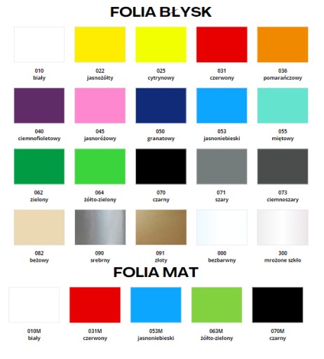 Wybierz swój kolor, w jakim mamy wykonać naklejki spośród dostępnych palet kolorów