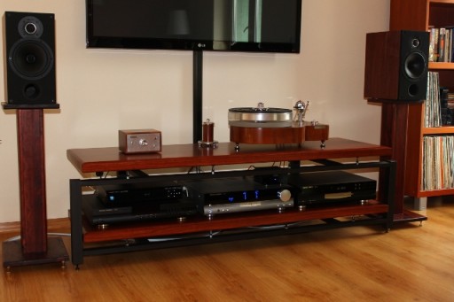 Konstrukcja z blatami z granitu jak i drewna jest specjalnie opracowana dla jak najlepszego pochłaniania drgań,ten stolik to wysokiej jakości audiofilska konstrukcja, bardzo solidna. Sam osobiście interesuje się tym hobby wiec wiem co jest dobre dla sprzętu. Waga prezentowanego stolika(3 półkowego) na zdjęciach to około 60kg!.