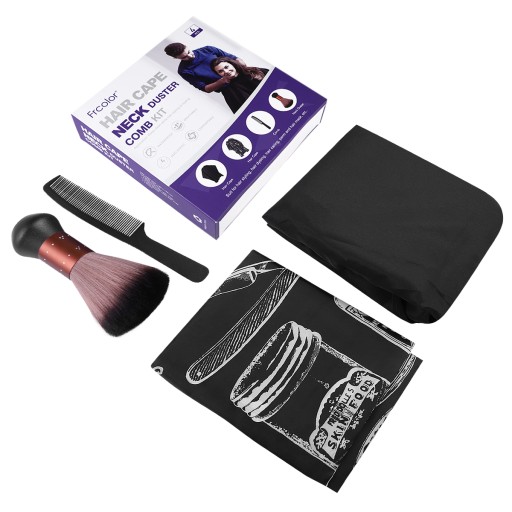 ✅ Rozmiar peleryny do włosów: 120 x 145 cm; Wymiary miotełki na szyję: 5 x 15 cm; Rozmiar grzebienia: 3,2 x 20,8 cm.