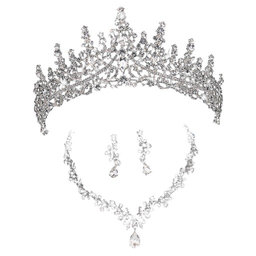 [Zestaw biżuterii ślubnej]: Jest to piękny zestaw biżuterii ślubnej, zawierający 1 oszałamiającą tiarę, 1 parę olśniewających kolczyków i 1 naszyjnik w opakowaniu.