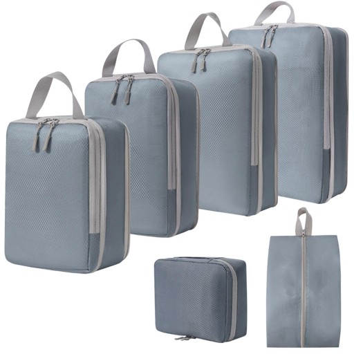 6 Pieces Compression Packing Cubes Laundry Bags for Holidays Outdoor Camping gray