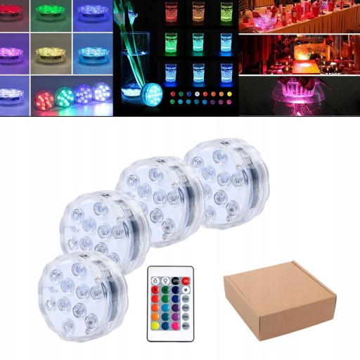 IP68 Wodoodporny, 10* 5050RGB diod LED, które można zanurzyć w wodzie. Zdalne 16 statycznych kolorów +4 (flash/stroboskop/fade i smooth) + regulowana jasność.