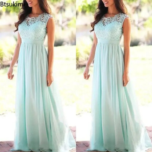 2024 Women Elegant Lace Patchwork Long Dress Female Solid Wedding Bridesmaid Party Maxi Dress Robe Femme Vestidos Dresses S-5XL