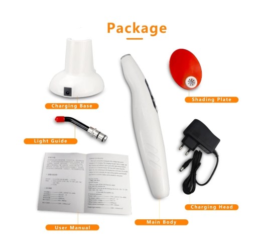 - Ta maszyna do utwardzania światłem charakteryzuje się regulowanym czasem pracy, intuicyjnym czasem pracy i wysoką wydajnością utwardzania. Ta maszyna do utwardzania światłem jest wyposażona w gniazdo ładowania, aby zidentyfikować stan ładowania (ładowanie: lampka kontrolna; koniec ładowania: LED BAA; lewa: host światła LED) Ta maszyna do utwardzania światłem w pracy brzęczyka co 5 sekund "bip", podczas gdy w tym samym czasie pozostały czas jest wyświetlany na wyświetlaczu; czas bez pracy, żaden klawisz nie zostanie naciśnięty w ciągu 120 sekund, maszyna do utwardzania światłem automatycznie wyłączy się, aby oszczędzać energię baterii; stan wyłączenia naciśnij dowolny klawisz, aby włączyć zasilanie. Urządzenie do utwardzania światłem jest automatycznie wyłączane w celu oszczędzania energii baterii; naciśnij dowolny przycisk, aby włączyć urządzenie, gdy jest wyłączone.