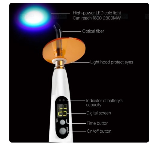 LED.B Stomatologiczna bezprzewodowa lampa do utwardzania światła Stomatologiczna bezprzewodowa lampa do utwardzania Intensywność wyjściowa 1200-1400 mw/cm2