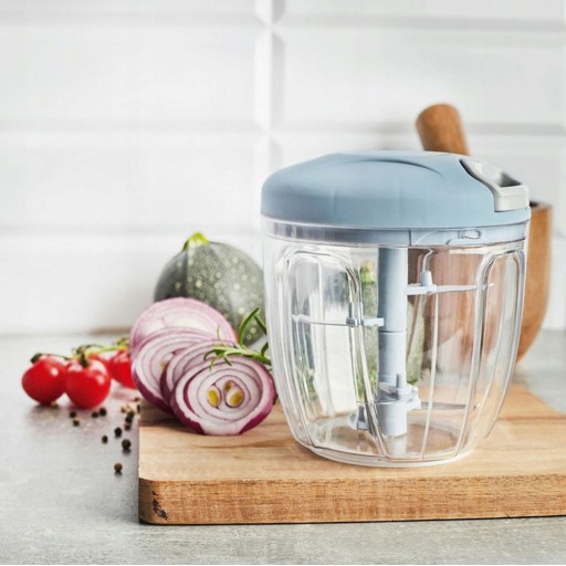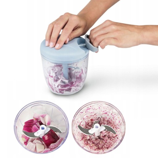 Ręczny siekacz to urządzenie niezbędne w każdej kuchni. Innowacyjny, a zarazem prosty napęd, pozwala na szybkie siekanie dużych kawałków owoców, warzyw, bakalii czy ziół. Szczególnie przydatny podczas szatkowania cebuli.