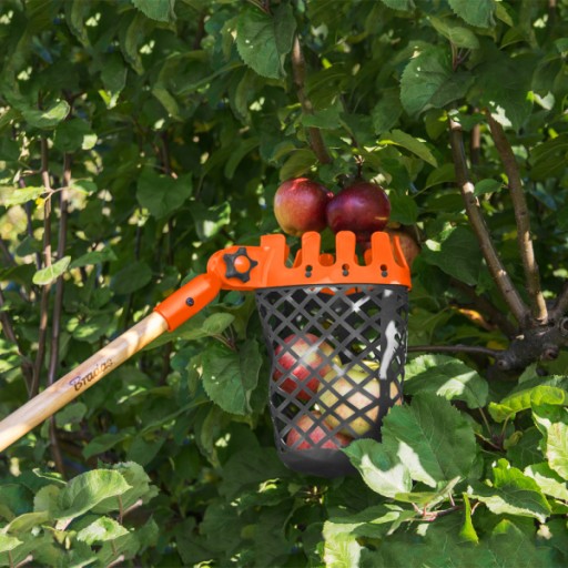 Łącząc zbierak z teleskopowym trzonkiem, możesz uzyskać niezastąpione narzędzie do zrywania owoców z wysokości nawet do 6 m.