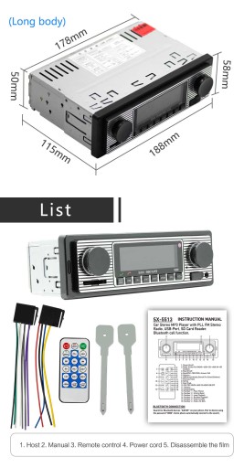 АВТОМОБИЛЬНОЕ РАДИО В СТИЛЕ РЕТРО BLUETOOTH USB МИКРОФОН