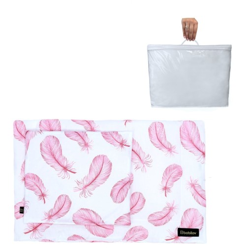 BOBILOV bawełniana pościel niemowlęca z wypełnieniem do gondoli, kosza Mojżesza, do łóżeczka wzór PUSZEK RÓŻ