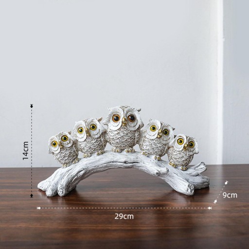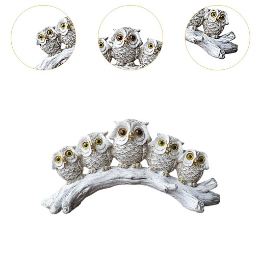 Figurka sowy kreatywna nowoczesna dekoracyjna statua z żywicy na biurko wejście do hotelu 29x9x14cm 5 sów