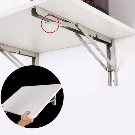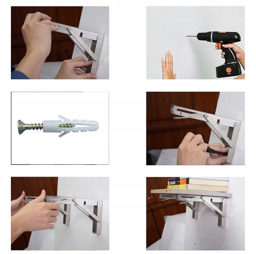 - Łatwy do zainstalowania i usunięcia, wytrzymały i stabilny. Musisz tylko upewnić się, że dwa składane wsporniki są równoległe do siebie i pionowe do ściany.
