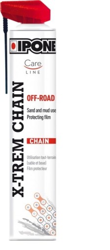Wysokiej jakości smar do łańcuchów ATV oraz motocykli terenowych. Zapewnia maksymalną żywotność łańcucha napędowego. Rekomendowany przez wielu zawodników. Ipone X-tream Chain Off-Road posiada specjalny dodatek powodujący odrzucanie drobin piasku oraz błota z łańcucha, co czyni go idealnym do offroadu.