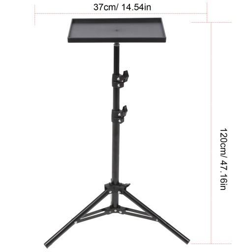 Stojak na projektor, przenośny stojak do biura, spotkania biznesowego, nagrywania, czytania, mowy, występów i kina domowego i tak dalej. Dołączona taca może pomieścić wiele przedmiotów, takich jak telefon komórkowy, aparat fotograficzny i tak dalej. Znakomita jakość wykonania, mocna i trwała, niełatwa do złamania.