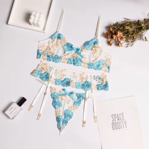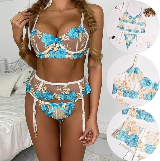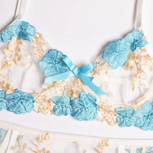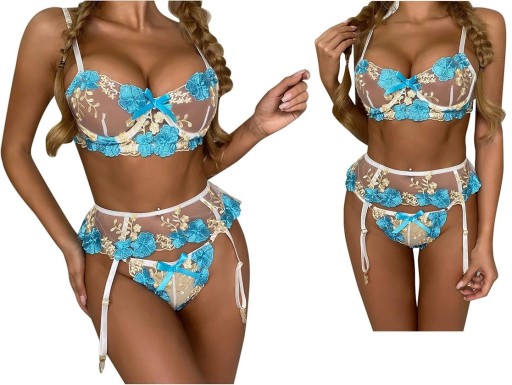 Piękne duże kwieciste koronkowe hafty wraz z kokardkami uczynią, że poczujesz się w tej bieliźnie wyjątkowo, seksownie i jeszcze bardziej atrakcyjnie!