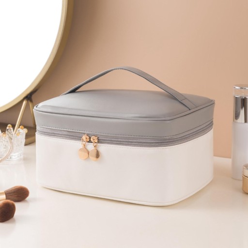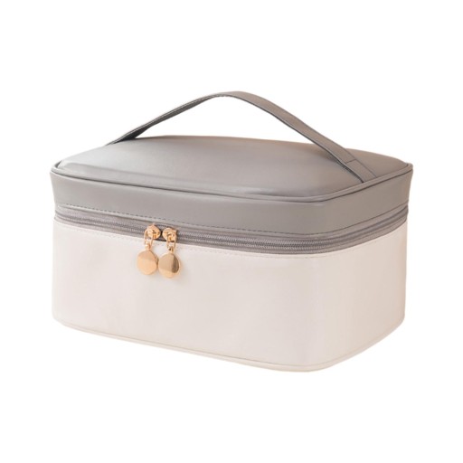 Женская косметичка Легкая косметичка с ручкой Серо-белая