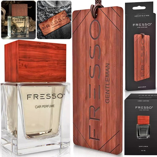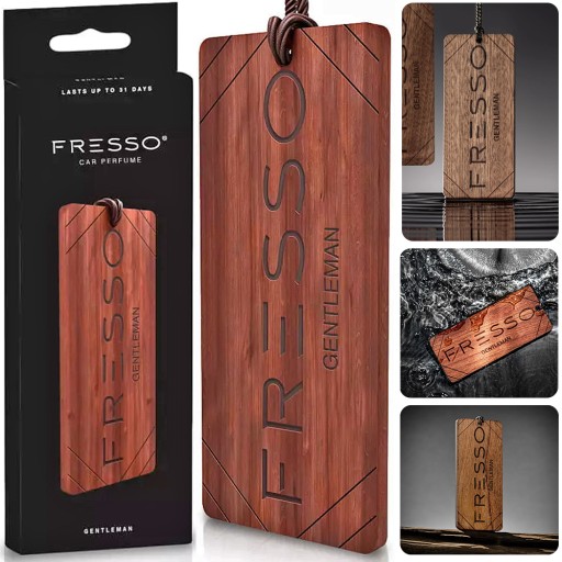Zestaw Fresso zawierający drewnianą zawieszkę oraz perfumy do samochodu 50 ml to doskonały upominek dla każdego fana motoryzacji.