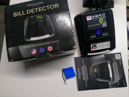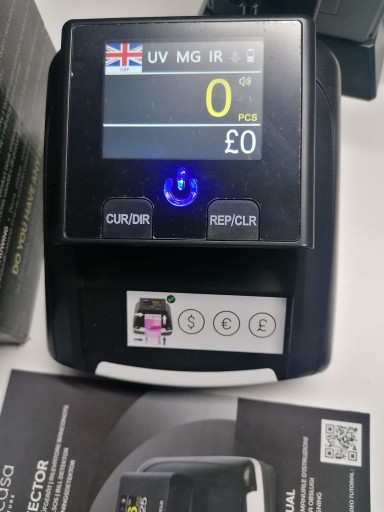 Aby ułatwić rozpoznanie banknotów, powinny być wprowadzane prosto. 2 w 1: Nasz tester pieniędzy jest również maszyną do liczenia banknotów. Sprawdzarka banknotów rejestruje wartość i liczbę Twoich banknotów. Maszyna do liczenia banknotów rozpoznaje waluty obce i podaje całkowitą wartość w euro, dolarach, funtach i wielu innych. Rozpoznaje bieżące i nowo pojawiające się serie banknotów: banknoty są 1 do 1.