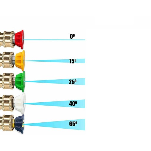 ❇️❇️【5 końcówek dysz】5 końcówek dysz natryskowych ma różne anioły natryskowe do różnych zastosowań, czerwony to 0 stopni, idealny do wysokich obszarów lub trudno dostępnych miejsc; Żółty to 15 stopni, idealny do betonu, cegły i innych twardych powierzchni; Zielony to 25 stopni, idealny do powierzchni drewnianych, ogrodzeń i kosiarek; Biały to 40 stopni, idealny do okien lub ekranów; Czarna ma 65 stopni, idealnie nadaje się do rozpylania płynu czyszczącego, spełniając Twoje potrzeby w różnych sytuacjach.
