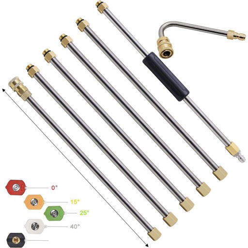 - ✔️ Narzędzia do czyszczenia rynien mają 5 najwyższej jakości dysz do wielu zastosowań. Dysze mydlane oraz dysze 40, 25, 15 i 0 stopni. Do każdego zadania czyszczenia można używać różnych rozmiarów!