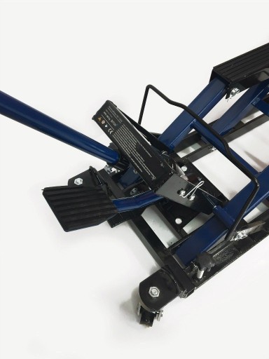 Wysoka jakość wykonania. Podnośnik o wielu zastosowaniach, dzięki niemu podniesiesz motocykl, quada, itd. Posiada dwa skrętne kółka i śruby stabilizujące. Nożycowy podnośnik do motocykli z mechanizmem hydraulicznym. Wsporniki pokryte są gumą, aby zapobiec uszkodzeniu. Przydatny w każdym profesjonalnym warsztacie i garażu. Wyposażony w dwie niezależne dźwignie do podnoszenia i opuszczania.