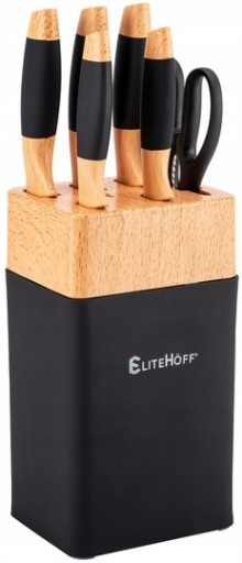 Zestaw noży marki Elitehoff został wyposażony w specjalny blok na noże, który oprócz estetycznego wyglądu został wyposażony w ostrzałkę do noży. Dzięki tej niewielkiej modyfikacji blok zyskał dodatkową funkcję mianowicie możliwość ostrzenia noży. Nie będziesz już szukał ostrzałki, aby sprawić noże znów ostrymi!