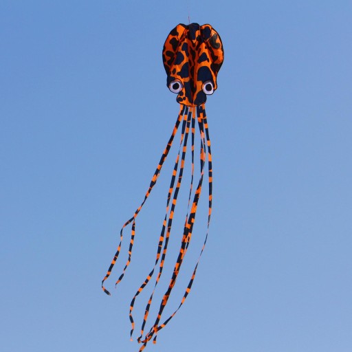 Konstrukcja Octopus, jasne kolory, gotowy do lotu, miękki latawiec, bez ramy i nie wymaga montażu.