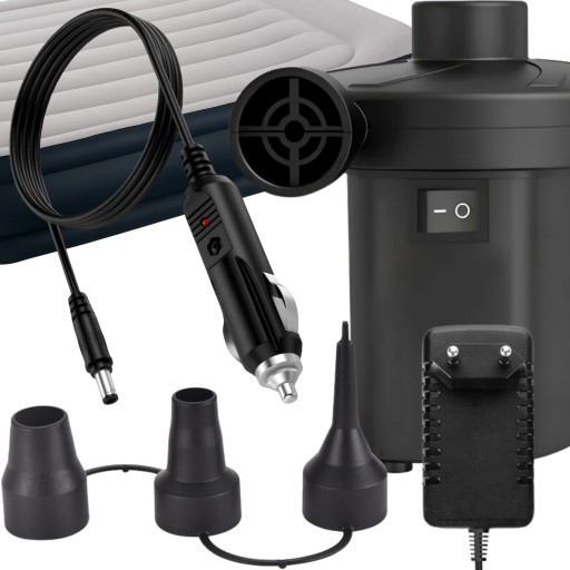 ELEKTRYCZNA POMPKA DO MATERACA PIŁKI BASENU AUTA 12V/230V 5w1 + 3 KOŃCÓWKI