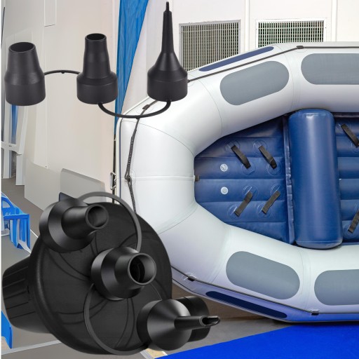 Pompka AC/DC posiada aż 3 różne końcówki (średnica 0,6/1,1/1,7cm), dzięki czemu można wykorzystać ją do nadmuchiwania wielu różnych dmuchanych akcesoriów: