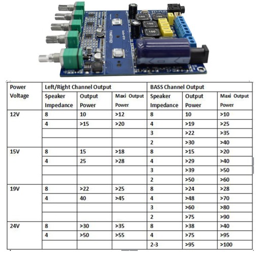 Impedancja głośnika: lewy/prawy kanał: 4-8omega, kanał BASS: 2-8 omega.
