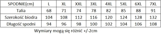 SPODNIE(cm) L XL XXL 3XL 4XL 5XL 6XL 7XL